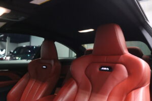 Finished in striking Black Sapphire Metallic with a bold Sakhir Orange/Black Extended Merino Leather interior, this M4 Coupe is a head-turner from every angle.