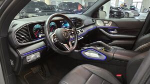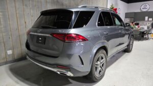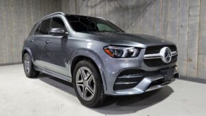 GNL is thrilled to feature the handsome 2022 Mercedes-Benz GLE 350 4Matic SUV finished in Selenite Grey exterior with Black leather interior and grey open pore oak wood. This full-size SUV comes loaded with AMG Styling Package, AMG double spoke 20″ wheels, Burmeister sound, smartphone integration, active park assist, active blind spot assist, panoramic glass sunroof, Keyless GO, heated seats and steering wheel, 360 Degree camera, logo projection, LED high performance headlights, Interior Lighting Package, power tailgate, and more!